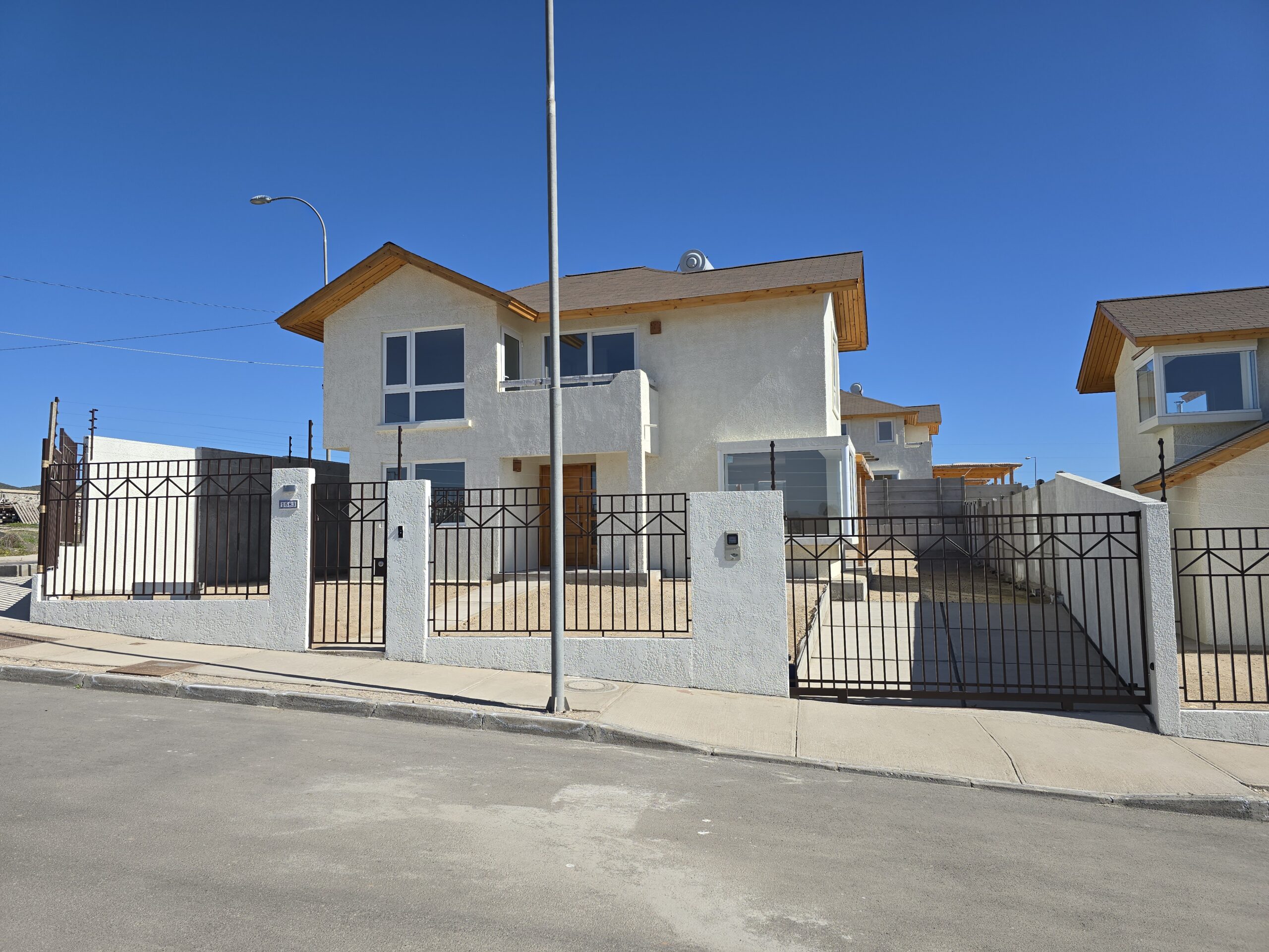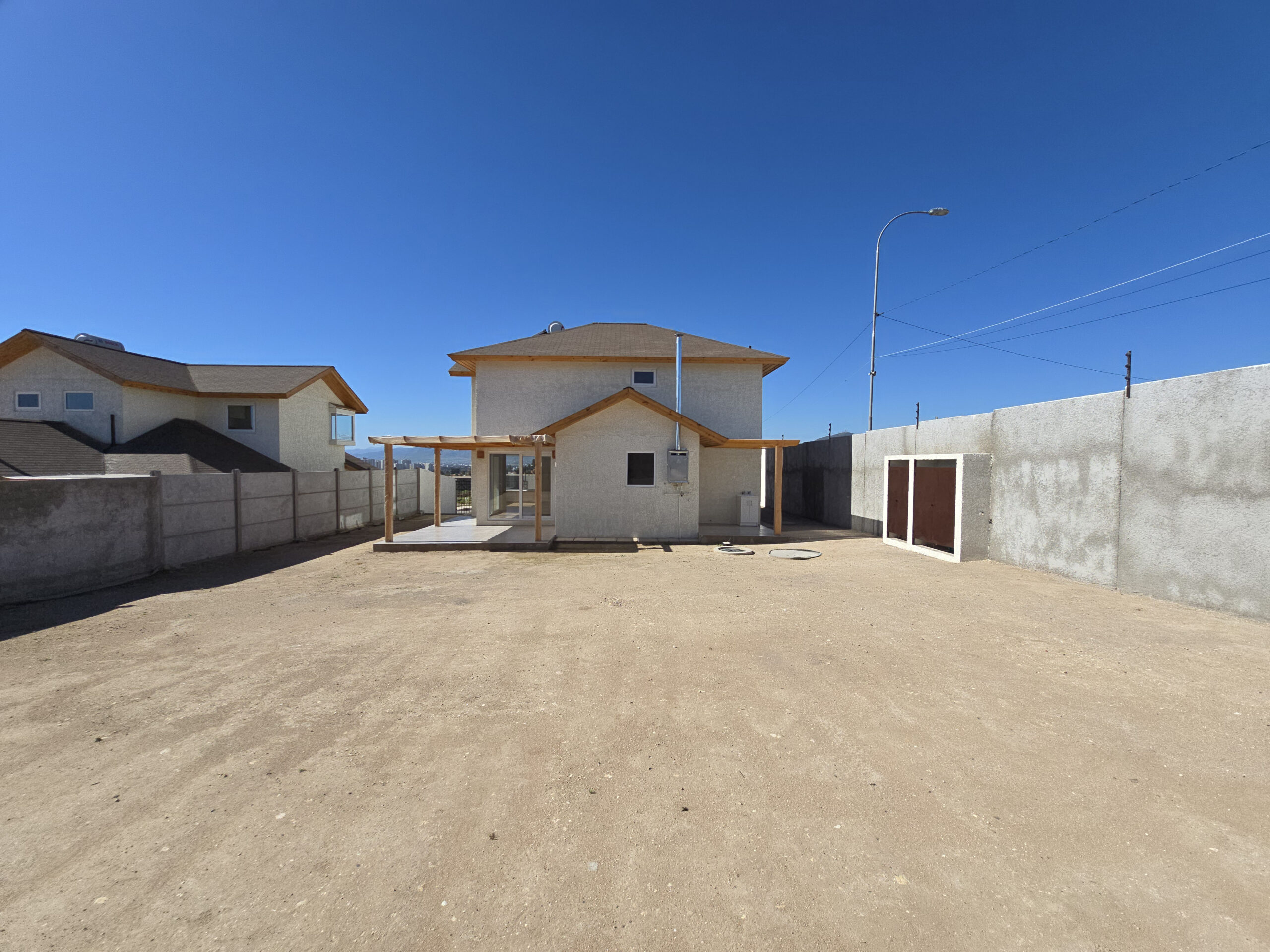 Pavimentos exteriores con vereda perimetral, acceso peatonal y vehicular de hormigón.